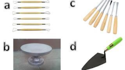 Gambar menunjukkan beberapa alat untuk membuat patung sesuai denganbahan dan teknik pembuatannya …