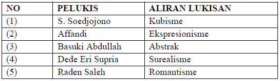 Pasangan yang tepat dari pelukis dan alirannya, terlihat pada nomer: