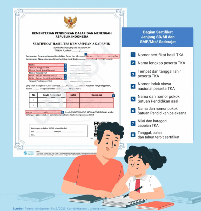 Kementerian Pendidikan Dasar dan Menengah (Kemendikdasmen) telah menerbitkan Permendikdasmen Nomor 9 Tahun 2025 yang mengatur pelaksanaan Tes Kemampuan Akademik (TKA) sebagai sistem evaluasi capaian akademik siswa di seluruh Indonesia.