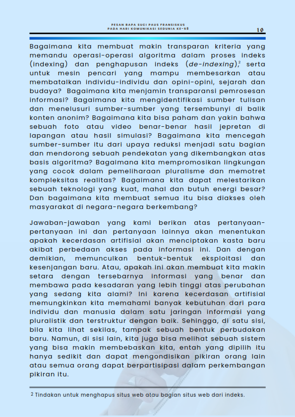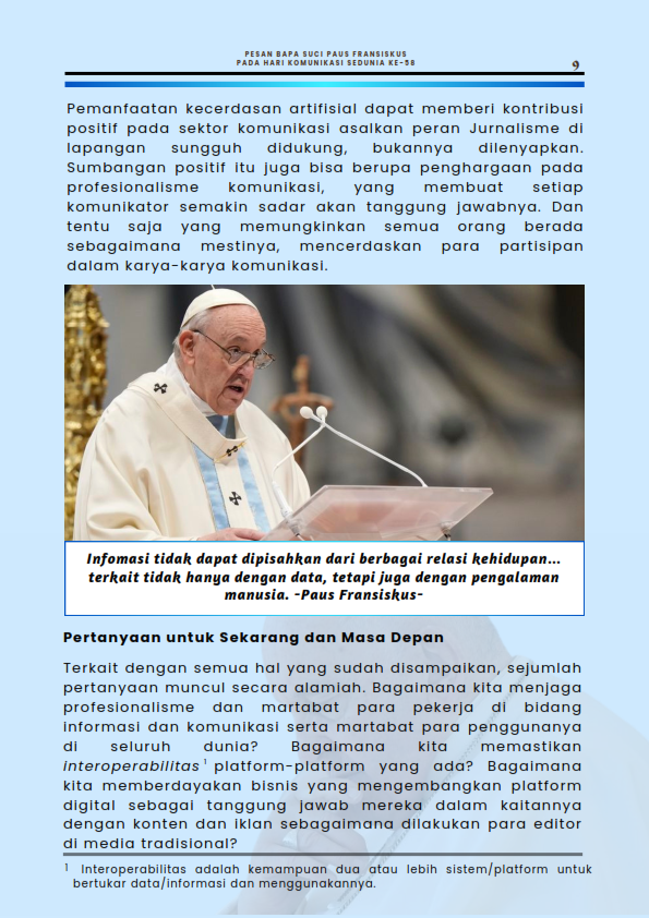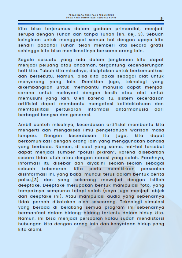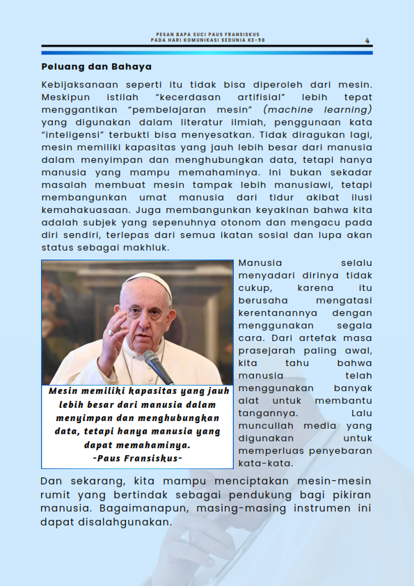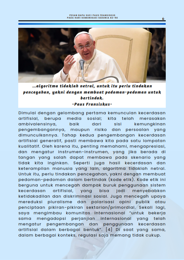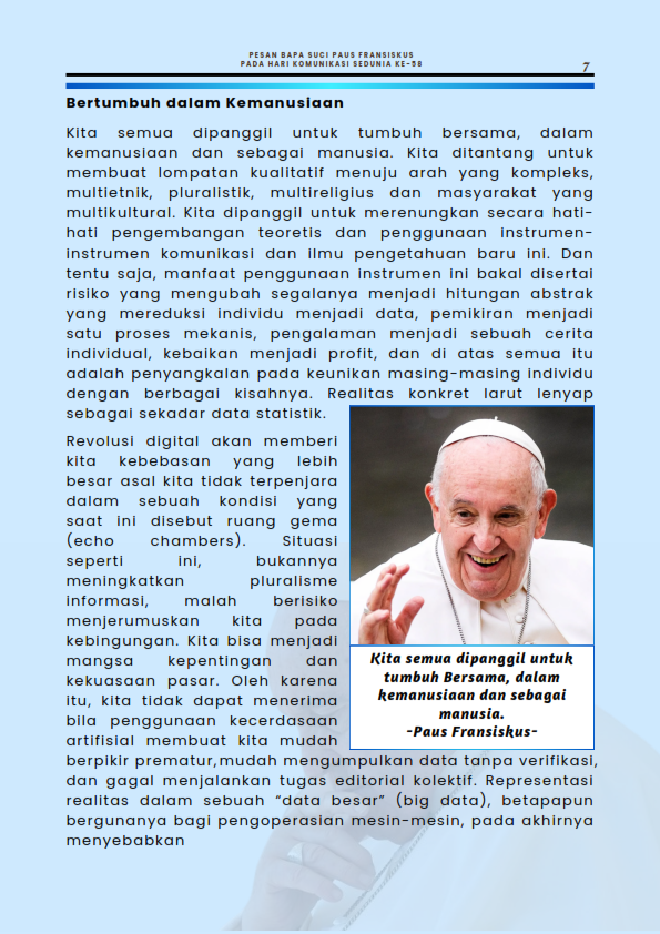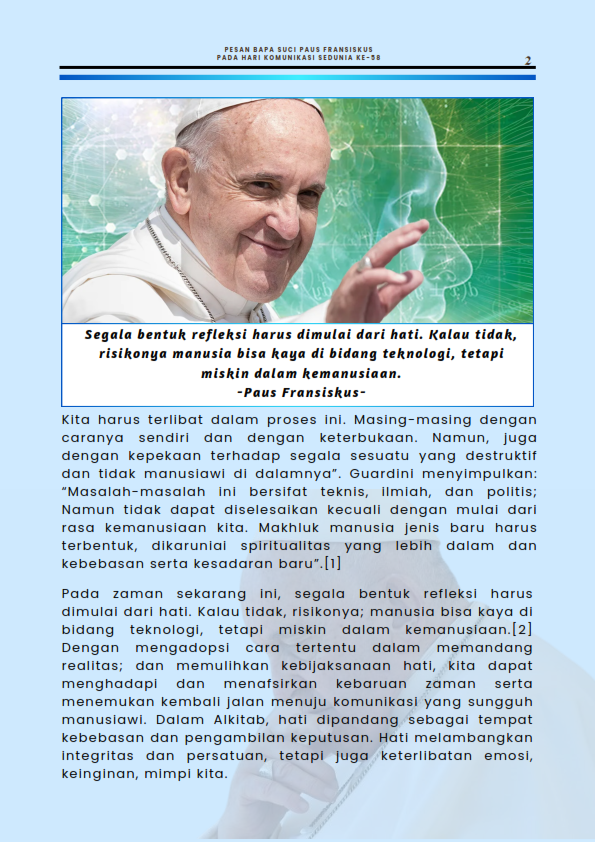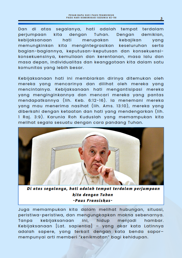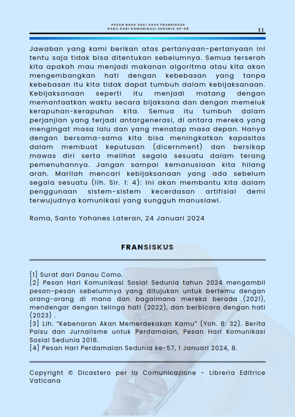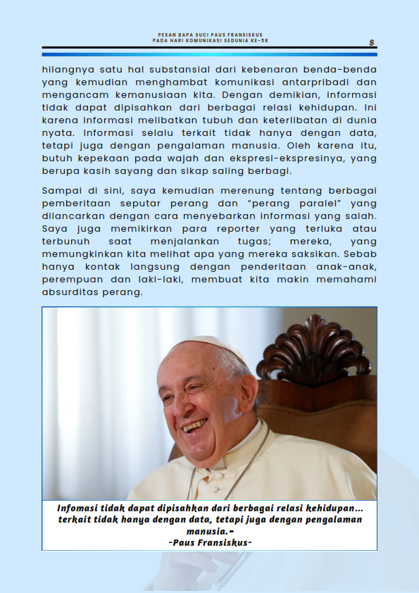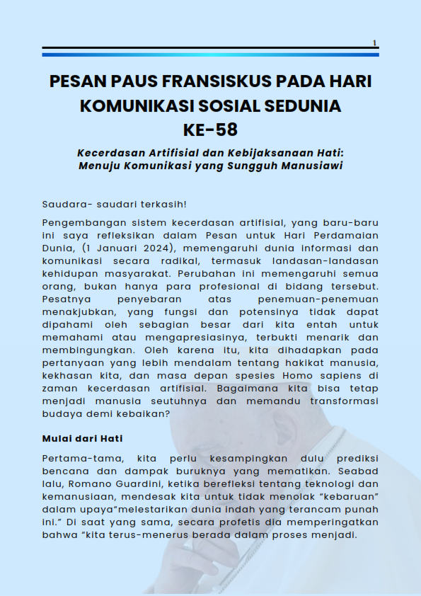 Pesan Paus Fransiskus Pada Hari Komsos Sedunia 2024